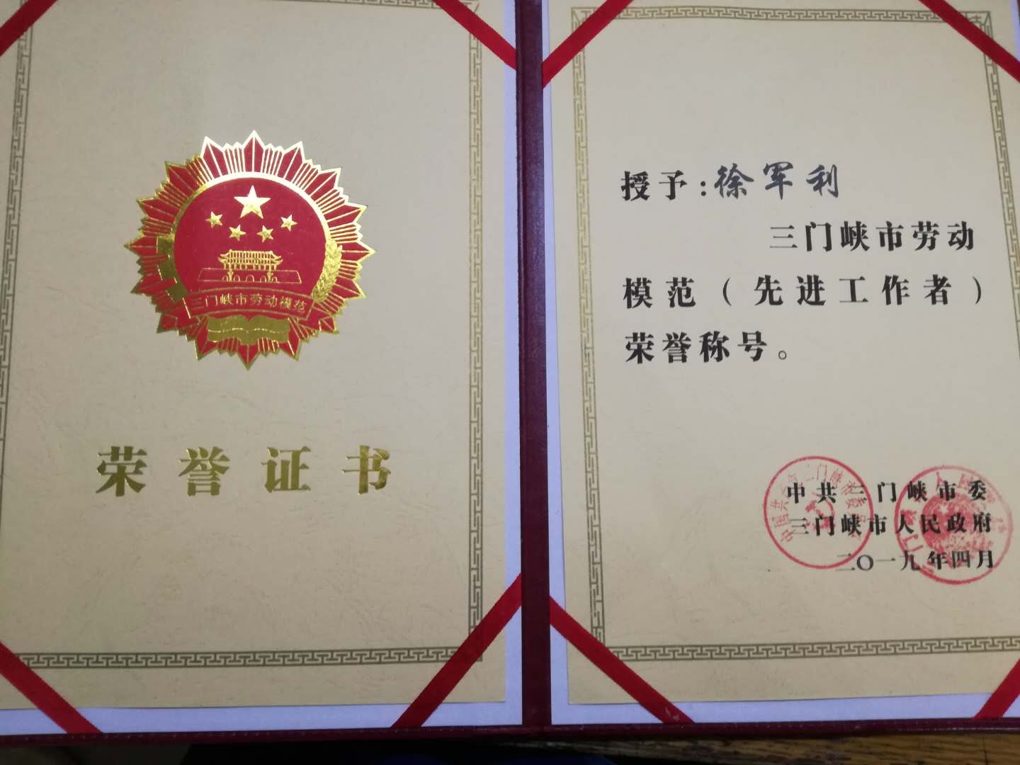 熱烈祝賀昊博公司徐軍利同志獲得“三門峽市勞動模范”榮譽(yù)稱號